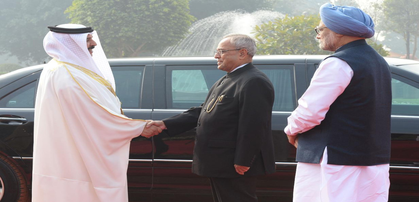 The President of India, Shri Pranab Mukherjee at the Ceremonial Reception of the King of Kingdom of Bahrain, His Majesty the King Hamad Bin Isa Al Khalifa at the Forecourt of Rashtrapati Bhavan in New Delhi on Feb 19, 2014