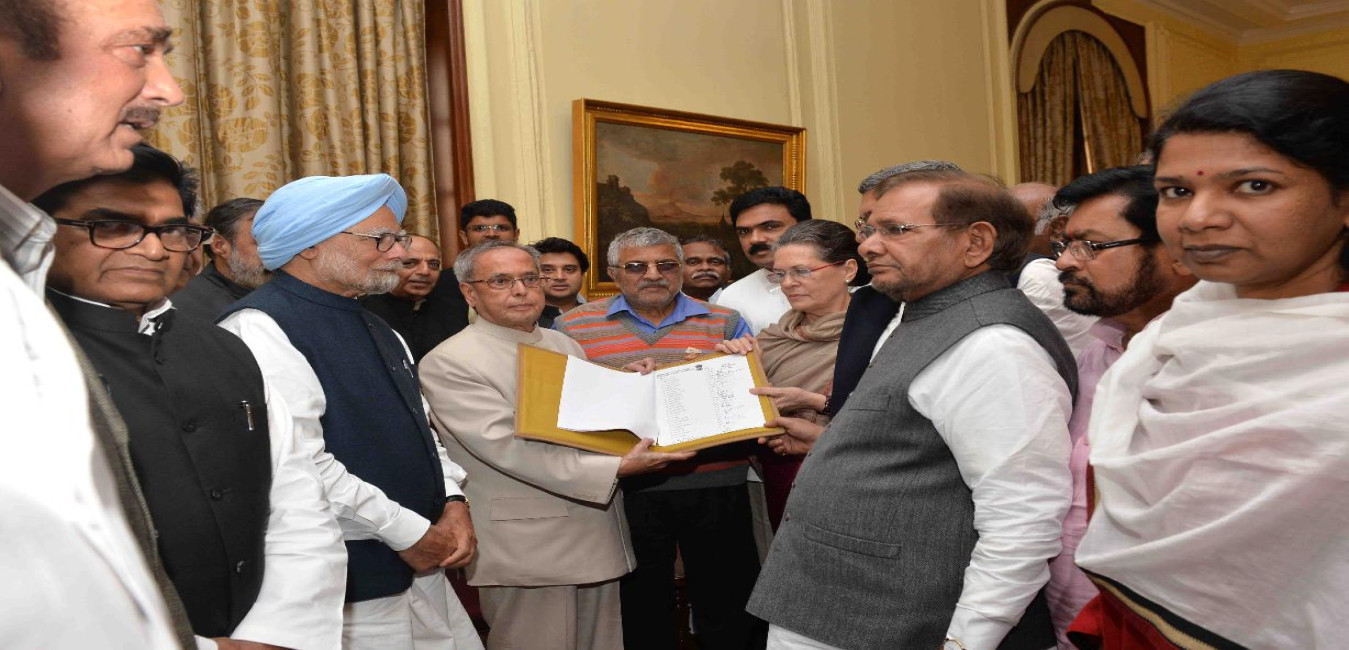 The President of India, Shri Pranab Mukherjee meeting with the delegation of leaders of the Indian National Congress, Janata Dal (United), Janata Dal (Secular), Samajwadi Party, All India Trinamool Congress, DMK, CPI(M), CPI, Rashtriya Janata Dal and Indian National Lok Dal, at Rashtrapati Bhavan, in New Delhi on March 17, 2015.