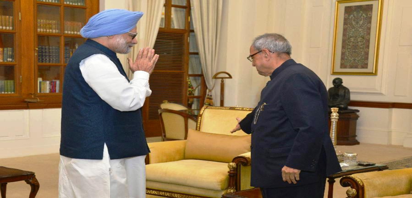The former Prime Minister of India, Dr. Manmohan Singh greeting the President of India, Shri Pranab Mukherjee on the occasion of his birthday, at Rashtrapati Bhavan on December 11, 2016.
