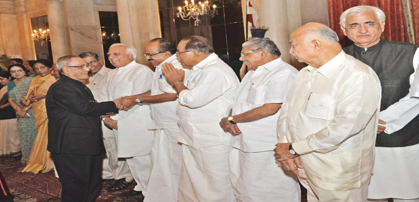 The President of India, Shri Pranab Mukherjee at the Dinner Hosted by him in Honour of the Prime Minister and the Outgoing Union Council of Ministers at Rashtrapati Bhavan in New Delhi on May 17, 2014