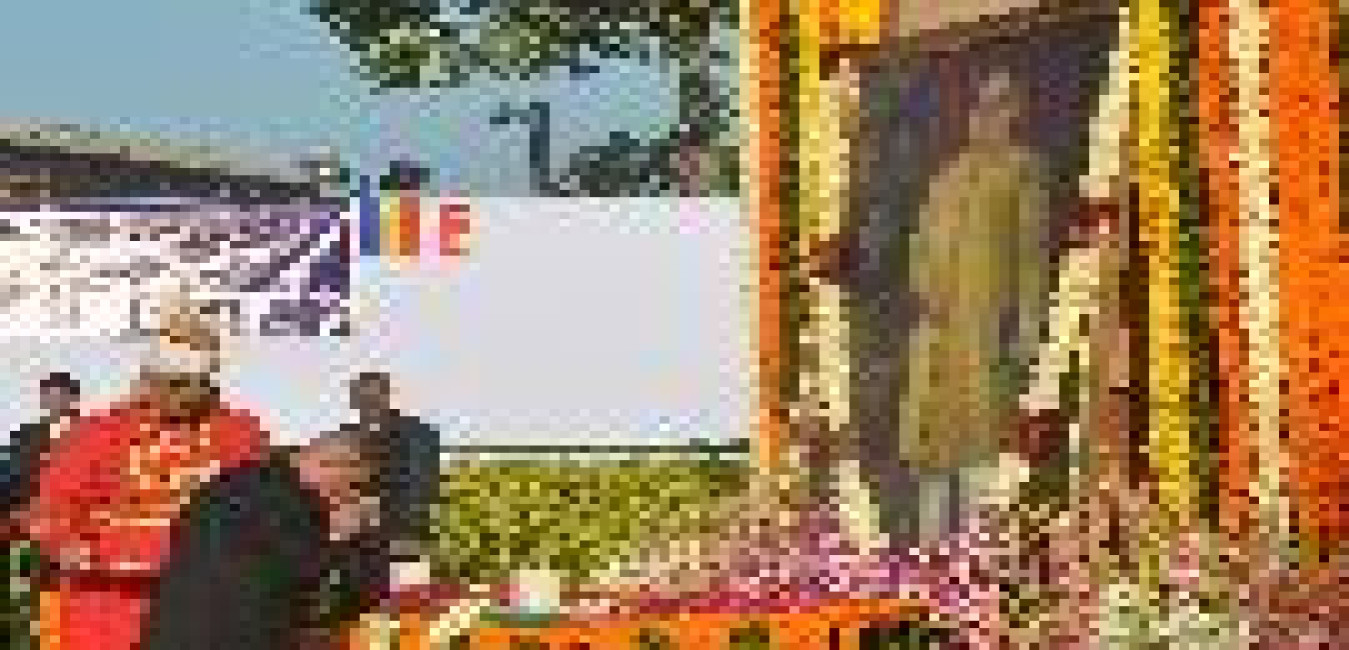 The President of India, Shri Pranab Mukherjee paying homage at the Samadhi of the Former Prime Minister of India, Late Smt Indira Gandhi to Commemorate her 30th Death Anniversary at Shakti Sthal in New Delhi on Oct 31, 2014