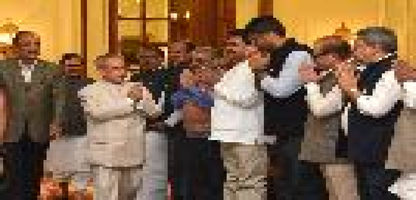 The President of India, Shri Pranab Mukherjee meeting with the delegation of leaders of the Indian National Congress, Janata Dal (United), Janata Dal (Secular), Samajwadi Party, All India Trinamool Congress, DMK, CPI(M), CPI, Rashtriya Janata Dal and Indian National Lok Dal, at Rashtrapati Bhavan, in New Delhi on March 17, 2015.