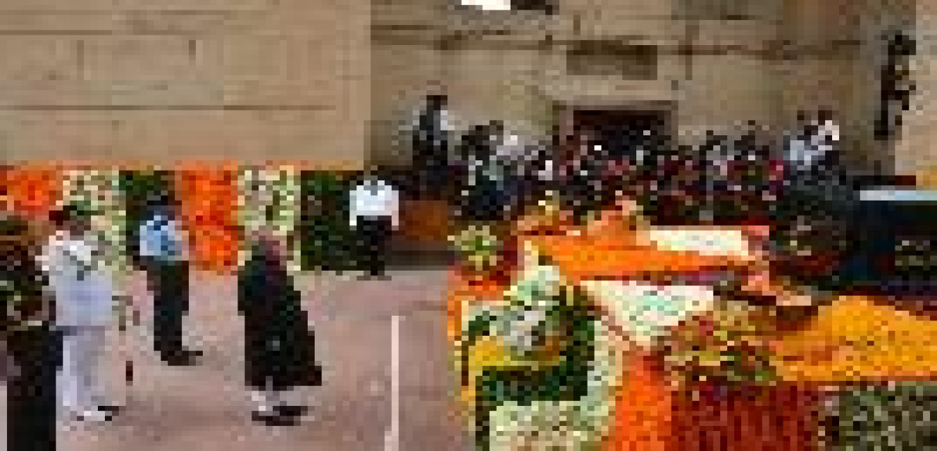 The President of India, Shri Pranab Mukherjee paying homage at Amar Jawan Jyoti to mark the Golden Jubilee of India's Victory in Indo-Pak War of 1965, in New Delhi on August 28, 2015.
