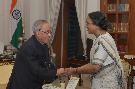 The President of India, Shri Pranab Mukherjee receiving Greetings from the Speaker of Lok Sabha, Smt Meira Kumar on the occasion of New Year 2014 at Rashtrapati Bhavan in New Delhi on Jan 01, 2014