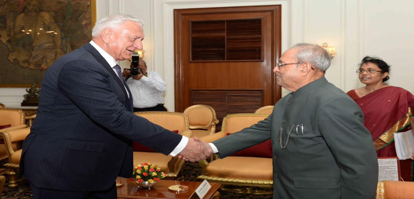 A Parliamentary delegation from Belarus led by Dr. Mikhail Myasnikovich, Chairman of the Republic of National Assembly of Belarus calling on the the President of India, Shri Pranab Mukherjee, at Rashtrapati Bhavan on May 11, 2016.