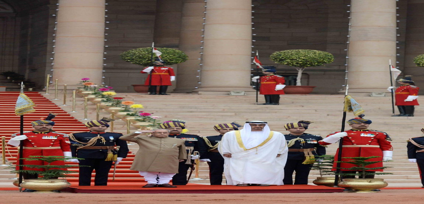 The President of India, Shri Pranab Mukherjee receiving HH General Sheikh Mohammed bin Zayed Al Nahyan, Crown Prince of Abu Dhabi during his Ceremonial Reception, at the Forcourt of Rashtrapati Bhavan on January 25, 2017.