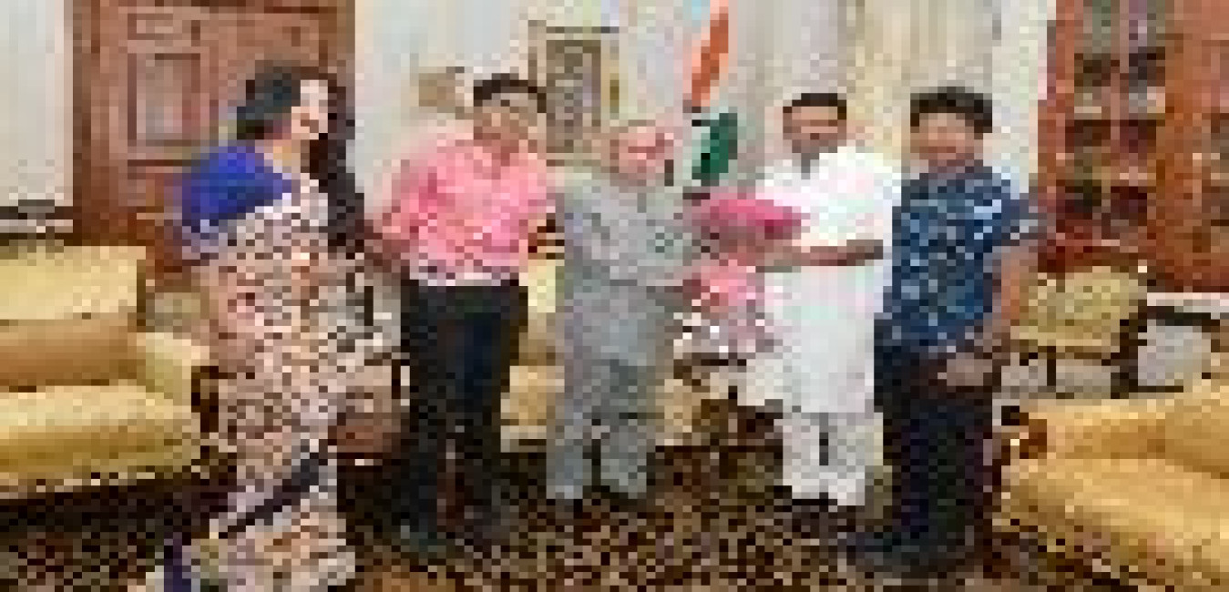 The President of India, Shri Pranab Mukherjee meeting with Smt. & Shri Nishikant Dubey, MP (LS) alongwith their sons Shri Kanishkkant and Shri Maahinkant, at Rashtrapati Bhavan on July 06, 2017.