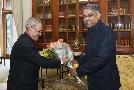 The President of India, Shri Pranab Mukherjee meeting with Shri P.K. Sinha, Cabinet Secretary, on the occasion of New Year, at Rashtrapati Bhavan on January 01, 2016.