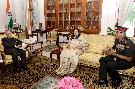 The President of India, Shri Pranab Mukherjee meeting with Lt. Gen. P.R. Shankar, Director General, Artillery & Hony ADC to the President alongwith his wife Smt. Lalitha Shankar, at Rashtrapati Bhavan on October 13, 2016.