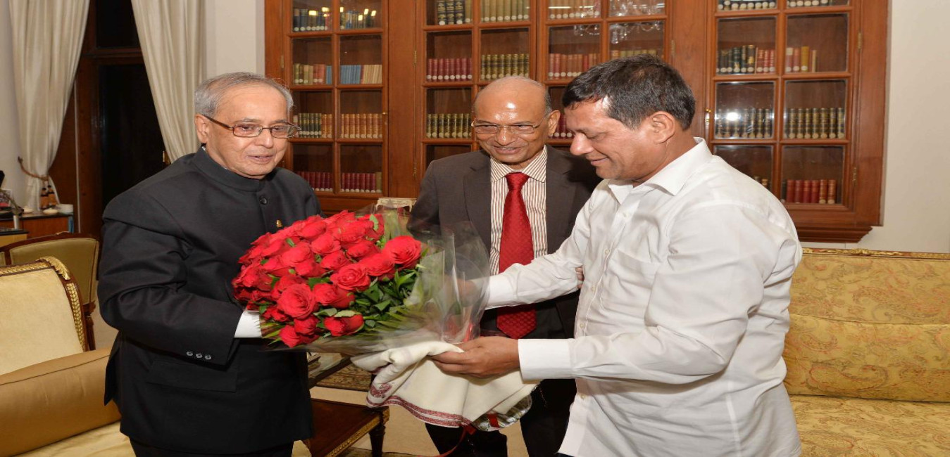 The President of India, Shri Pranab Mukherjee meeting with Shri PH Parekh, at Rashtrapati Bhavan, in New Delhi on September 19, 2015.