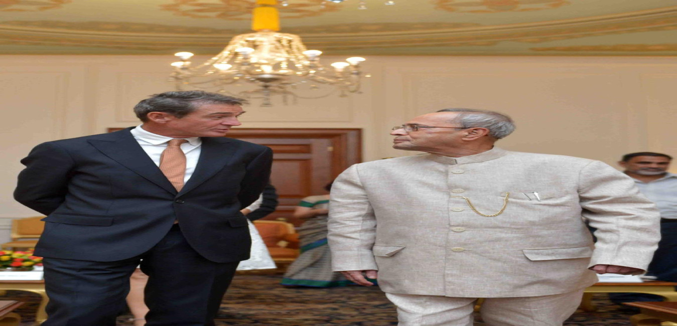 The Australian Ultra-marathon long-distance runner and former Member of the Australian Parliament, Mr. Pat Farmer calling on the President of India, Shri Pranab Mukherjee, at Rashtrapati Bhavan on March 31, 2016.