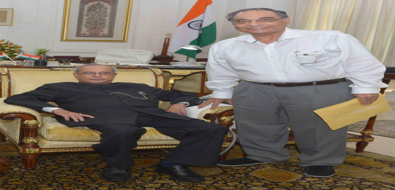 The President of India, Shri Pranab Mukherjee meeting with Dr. R.K. Bali, at Rashtrapati Bhavan on July 21, 2017.