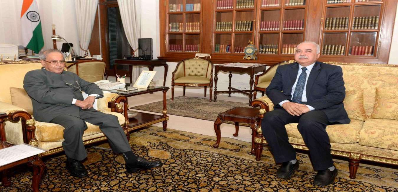 The President of India, Shri Pranab Mukherjee meeting with Shri Rajeev Rishi, Chairman & Managing Director, Central Bank of India, at Rashtrapati Bhavan on July 27, 2016.