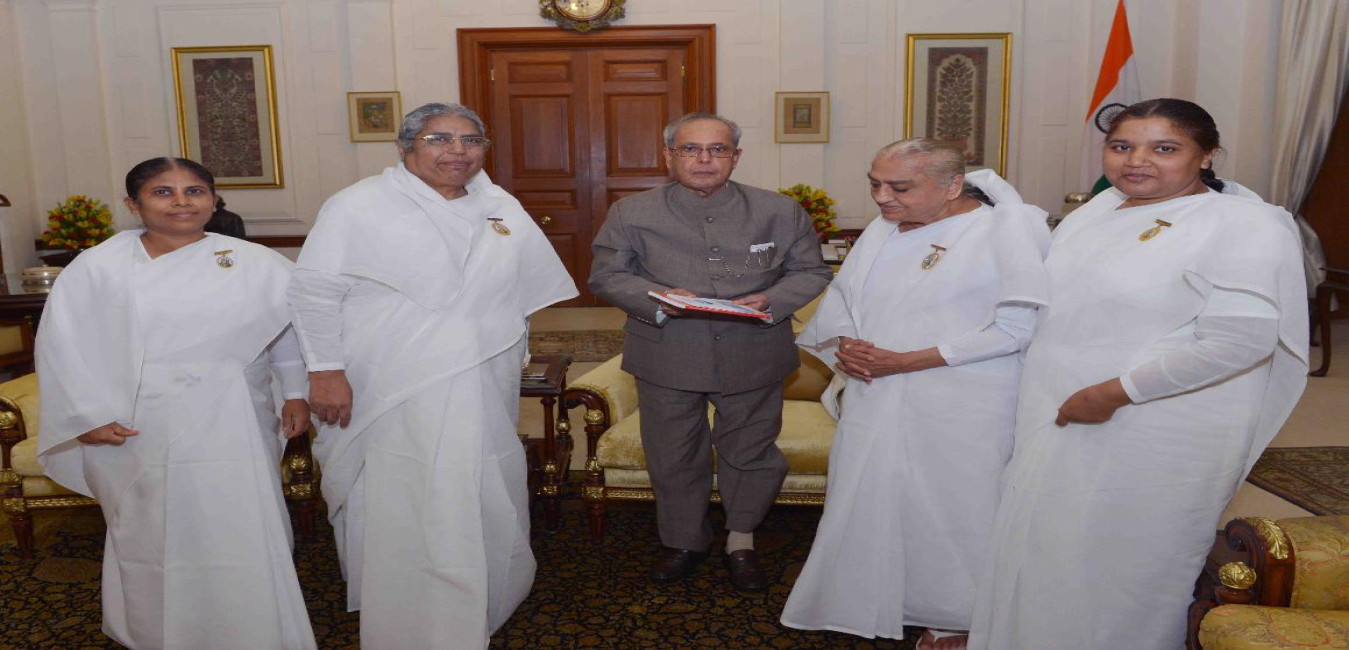 The President of India, Shri Pranab Mukherjee meeting with Rajyogini Dadi Hirdaya Mohini, Additional Chief of Brahma Kumaris and others, at Rashtrapati Bhavan, in New Delhi on September 04, 2015.