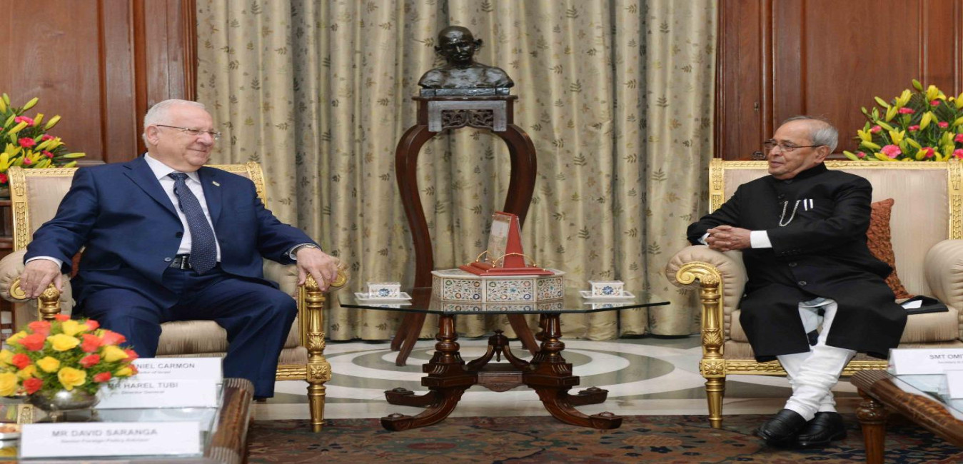 The President of India, Shri Pranab Mukherjee meeting the President of Israel, H.E. Mr. Reuven Rivlin, at President House, Jerusalem, in Israel on October 14, 2015.