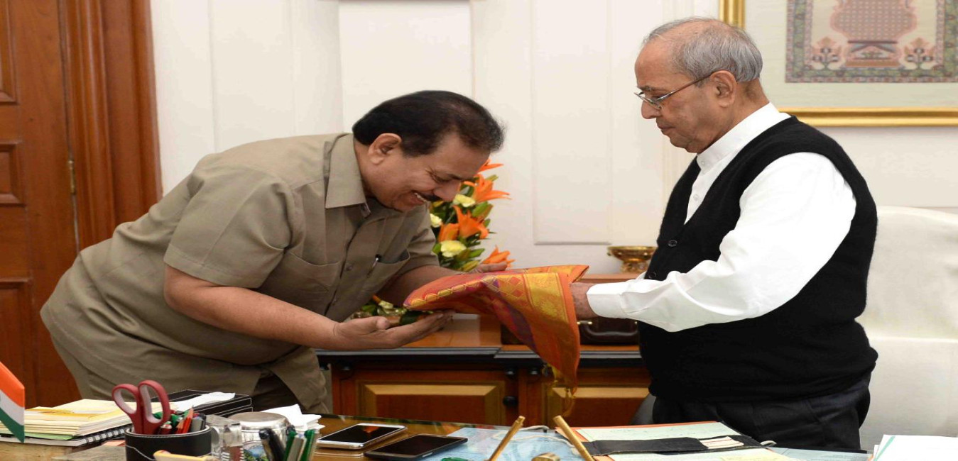 The President of India, Shri Pranab Mukherjee meeting with Dr. S. Venugopala Chary, Special Representative of Telangana State, at Rashtrapati Bhavan on February 28, 2017.