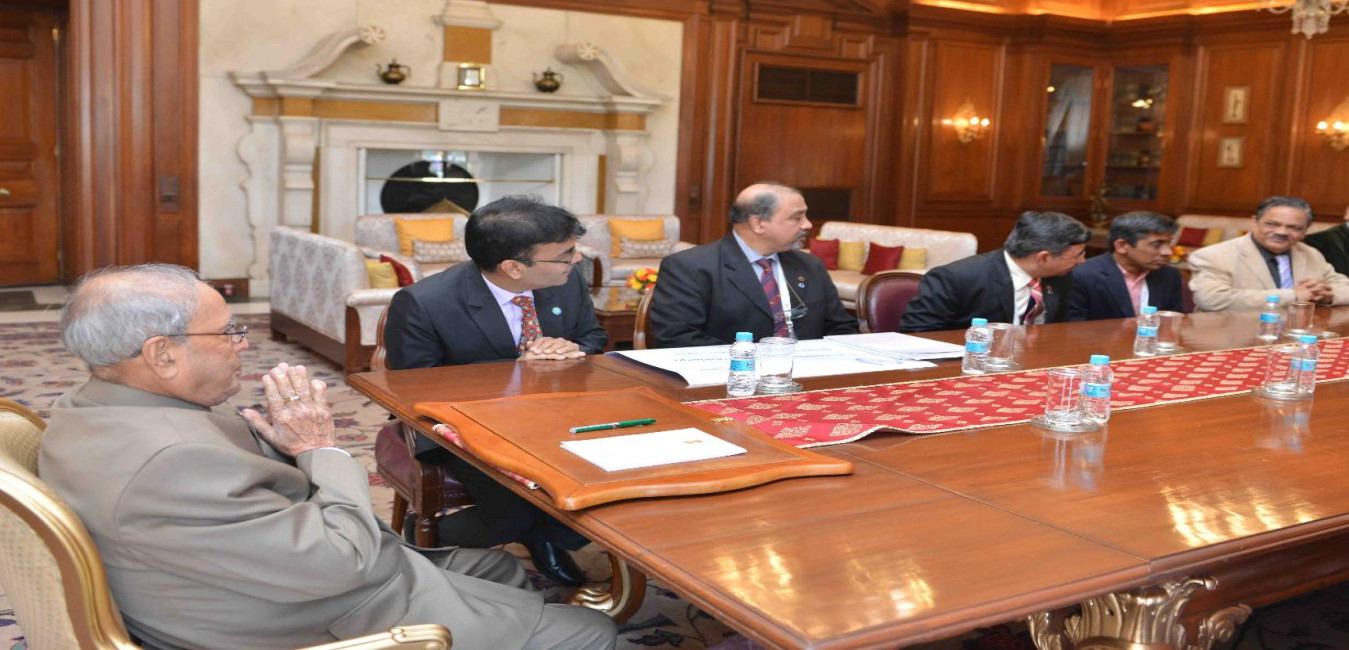 The President of India, Shri Pranab Mukherjee meeting with Dr. S.M. Sadikot, Vice President of International Diabetes Federation and President of Diabetes India along with faculty members, at Rashtrapati Bhavan on February 24, 2017.