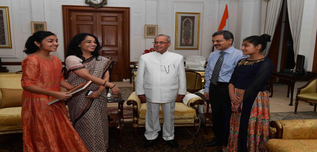 The President of India, Shri Pranab Mukherjee meeting with Shri & Smt. Shamima Siddiqui, Dy Press Secretary alongwith their daughters Ms. Simra Siddiqui & Ms. Shazia Siddiqui, at Rashtrapati Bhavan on July 23, 2017.