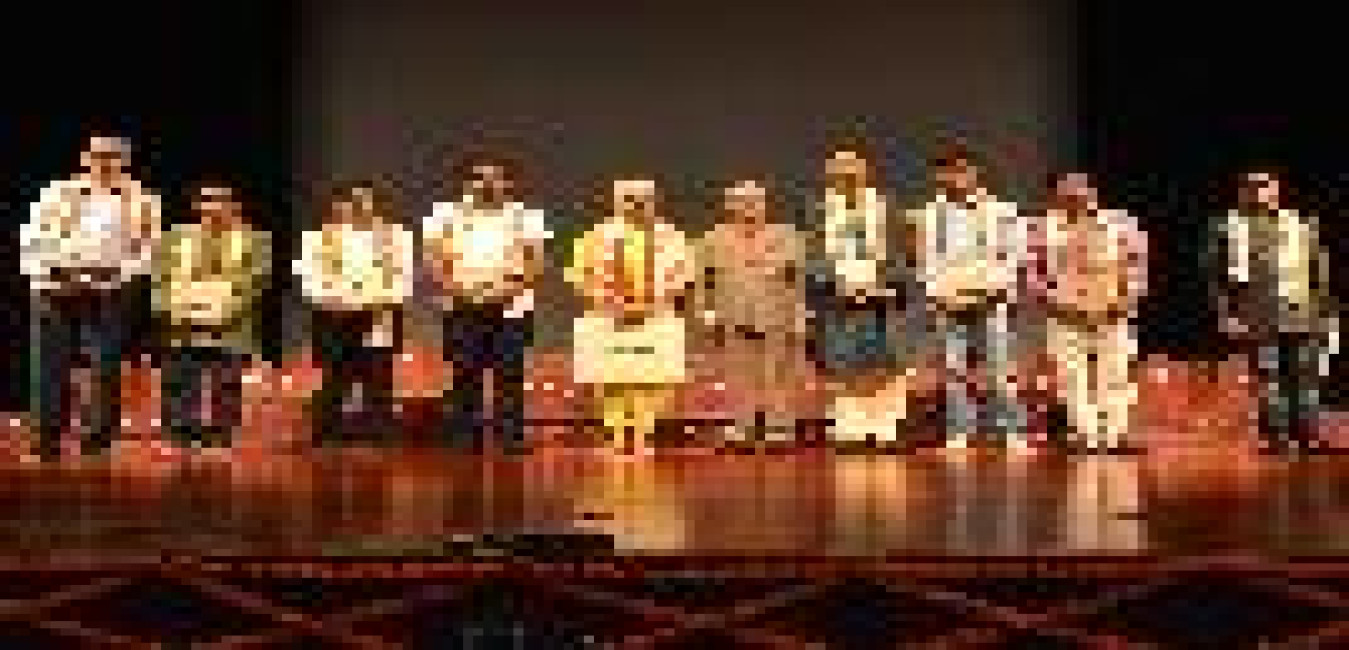 The President of India, Shri Pranab Mukherjee with the artists after witnessing a musical mono act on the Life of 'Soordas' by Shri Shekhar Sen, at Rashtrapati Bhavan Cultural Centre, in New Delhi on April 11, 2015.