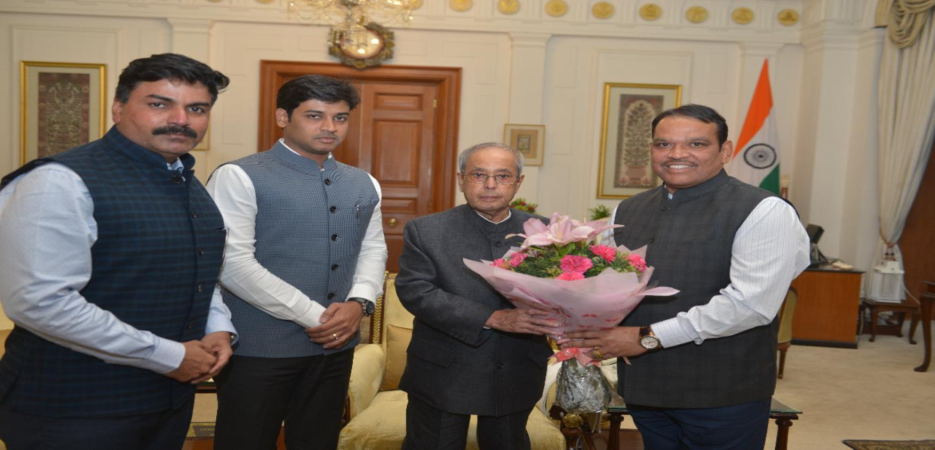 The President of India, Shri Pranab Mukherjee meeting with Shri Shrirang Appa Barne, MP (LS) alongwith his wife and sons, at Rashtrapati Bhavan on December 01, 2016.
