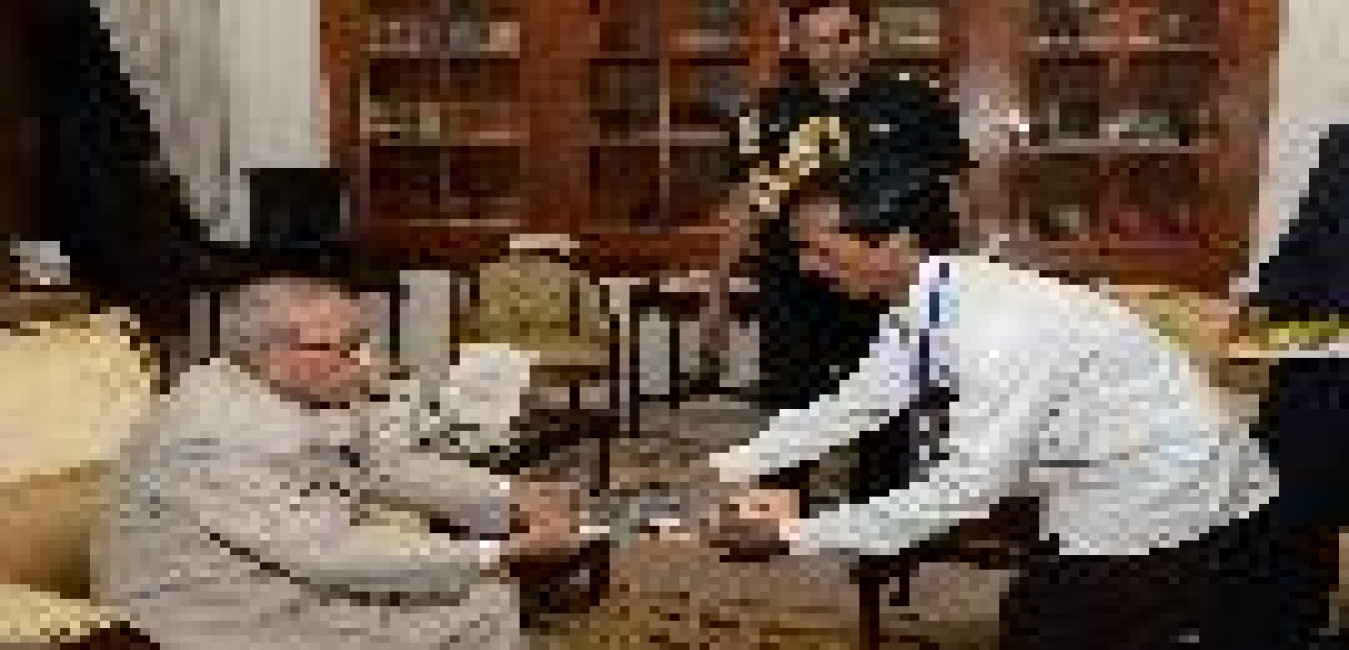 The President of India, Shri Pranab Mukherjee receiving a copy of the book ''Pandit Sir'' from Shri Sukesh Kumar Mandal along with Dr. Kanchan Kumar Bhowmik, at Rashtrapati Bhavan on March 09, 2017.