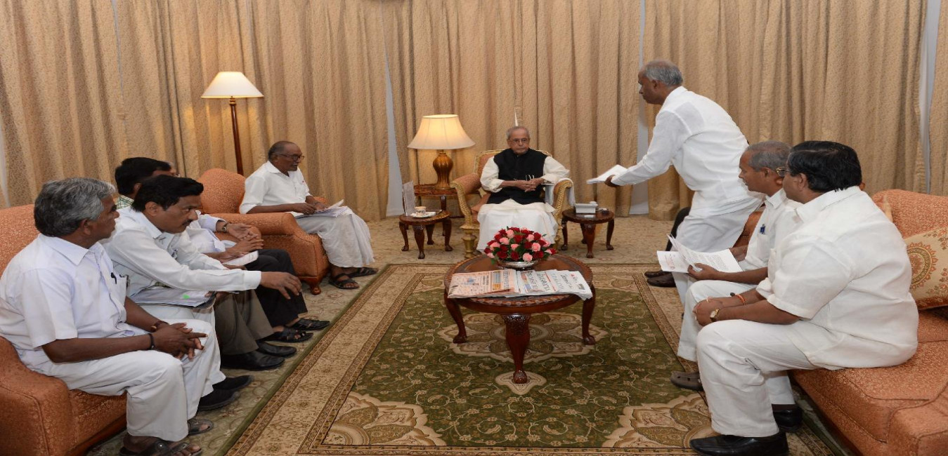 The President of India, Shri Pranab Mukherjee meeting with Shri Sunnam Rajaiah, MLA and others, at Rashtrapati Nilayam, Bolarum, in Secunderabad on July 06, 2015.