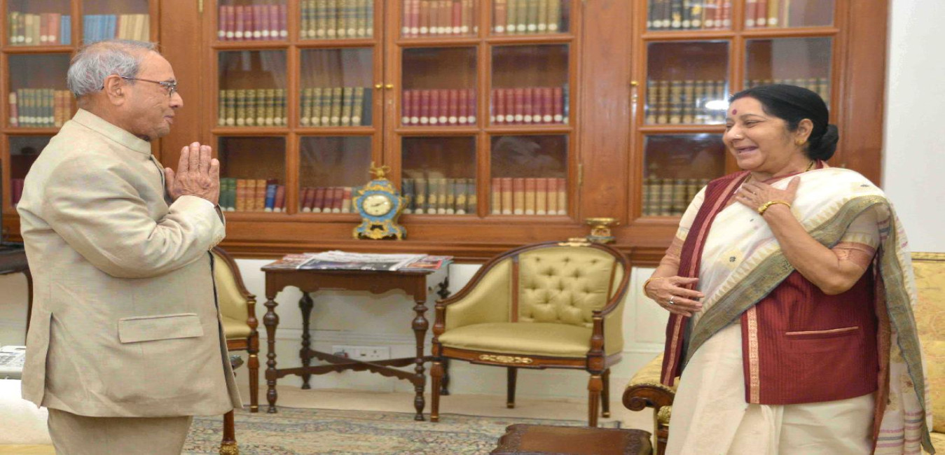 The President of India, Shri Pranab Mukherjee meeting with Smt. Sushma Swaraj, Minister of External Affairs, at Rashtrapati Bhavan on August 02, 2016.