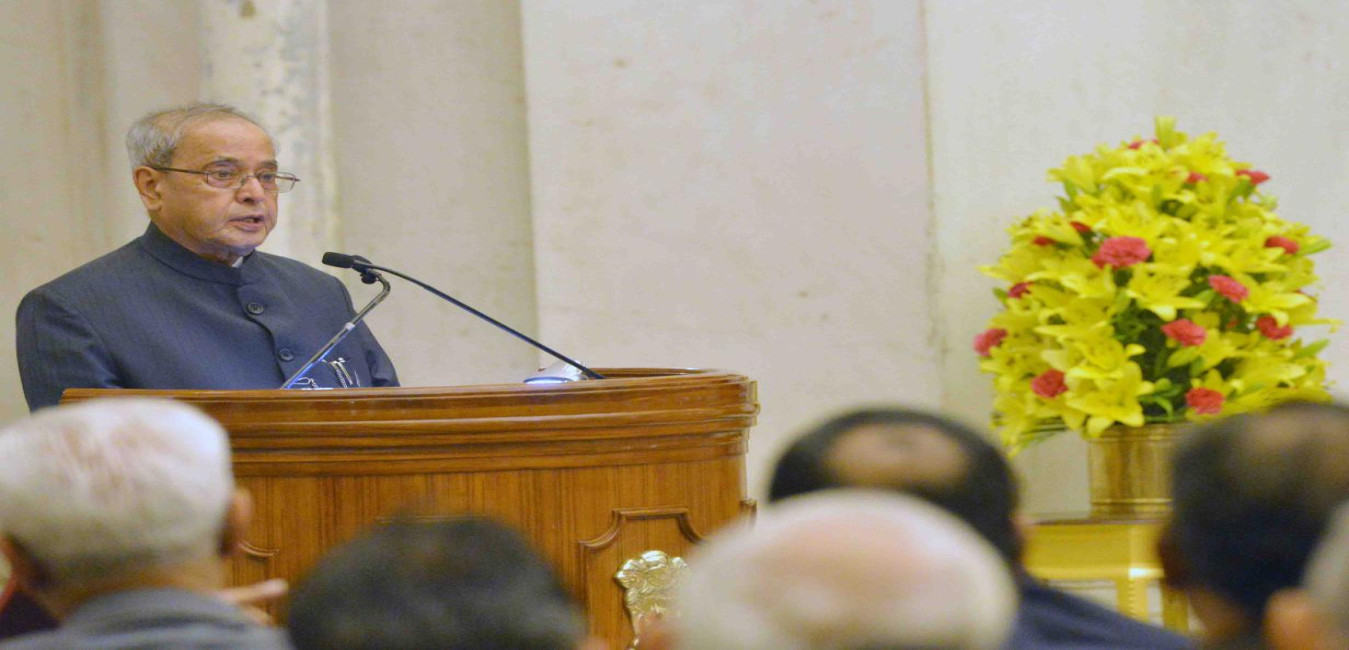 The President of India Shri Pranab Mukherjee addressing at the inauguration of International Conference of Indologists and presenting first Distinguished Indologist Award to Prof. Emeritus Heinrich Freiherr Von Stietencron of the Federal Republic of Germany, at Rashtrapati Bhavan on November 21, 2015.