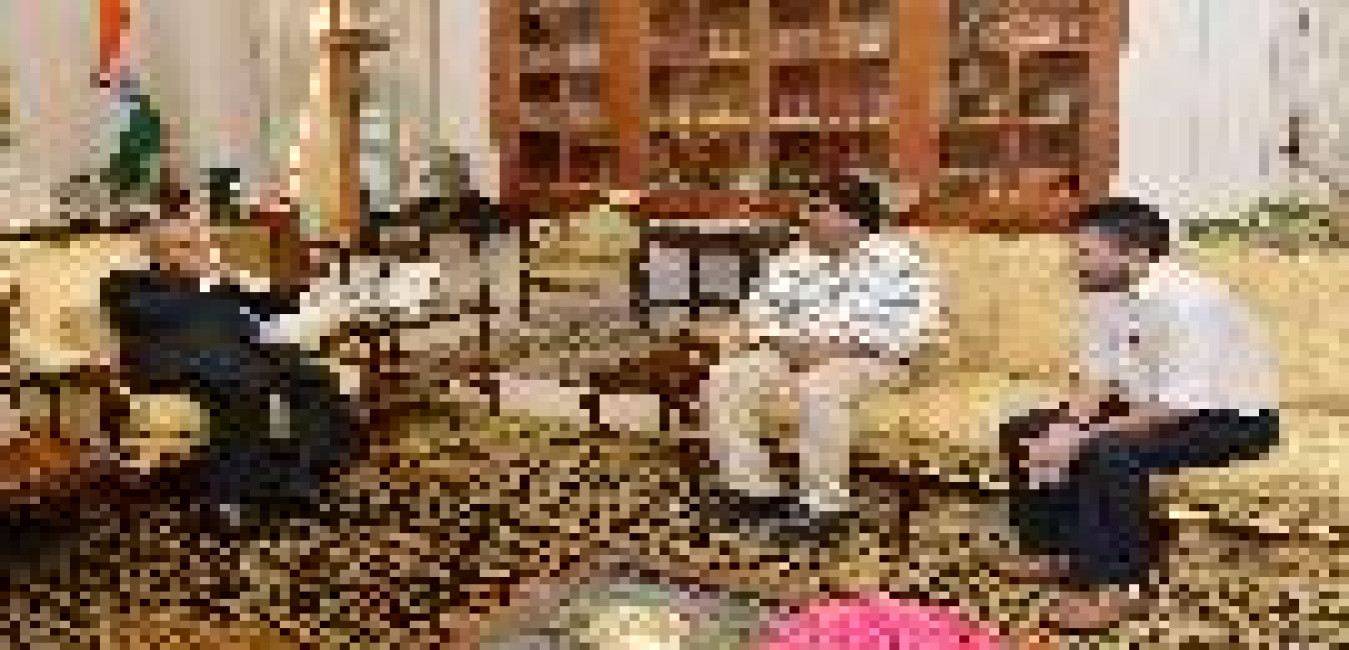 The President of India, Shri Pranab Mukherjee meeting Shri Swakshar Sengupta and Shri Rajat Roy Choudhury, at Rashtrapati Bhavan, in New Delhi on July 31, 2015.