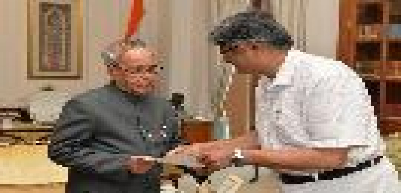 The President of India, Shri Pranab Mukherjee receiving a set of 14 Books on Tagore, published by the Jamia Milia Islamia under the tagore Research and Translation Scheme from Prof. Talat Ahmad, Vice Chancellor and others from Jamia Millia Islamia, at Rashtrapati Bhavan, in New Delhi on August 21, 2015.