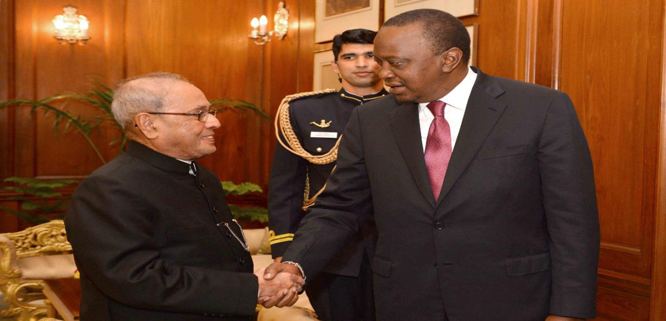 The President of the Republic of Kenya, H.E. Mr. Uhuru Kenyatta calling on the President of India, Shri Pranab Mukherjee, at Rashtrapati Bhavan on January 11, 2017.