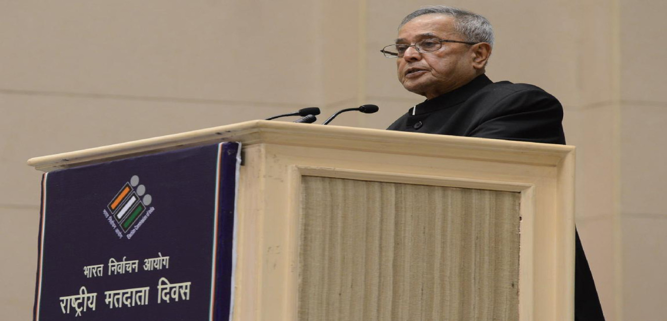 The President of India, Shri Pranab Mukherjee during the National Voters Day Celebrations at Vigyan Bhavan in New Delhi on Jan 25, 2014
