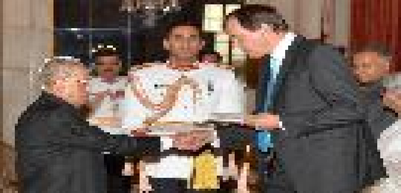 The President of India, Shri Pranab Mukherjee meeting with Shri Dwijaprasad Bhattacharya with others, at Rashtrapati Bhavan on March 31, 2016.