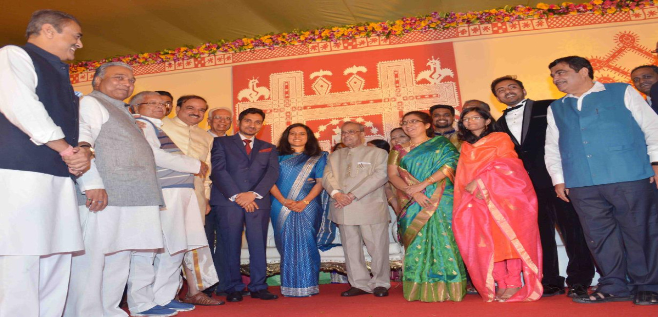 The President of India, Shri Pranab Mukherjee attending the Wedding Reception of Ms. Aishwarya, daughter of Shri Ananth Kumar, Union Minister of Chemicals & Fertilizers, in New Delhi on March 15, 2016.