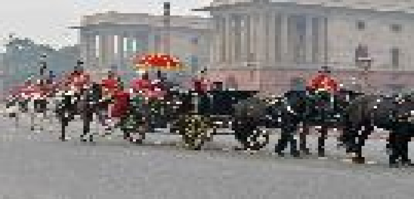 The President of India, Shri Pranab Mukherjee receiving National salute from PBG and leaving Forecourt for Vijay Chowk to witness the Beating Retreat , in New Delhi on January 29, 2016.