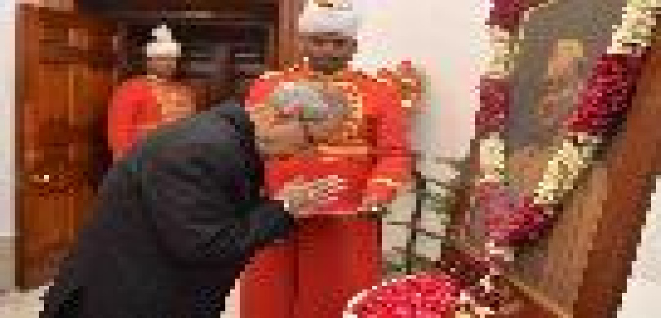 The President of India, Shri Pranab Mukherjee paying floral tributes at the portrait of Netaji Subhash Chandra Bose on the occasion of his Birth Anniversary, at Rashtrapati Bhavan on January 23, 2016.