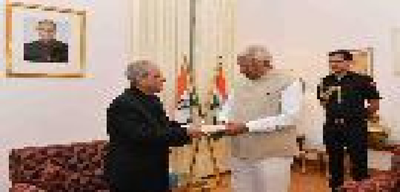 The President of India, Shri Pranab Mukherjee meeting with Shri Justice Raghvendra S. Chauhan, Judge, Karnataka High Court, at Raj Bhavan, Bengaluru on December 23, 2015.
