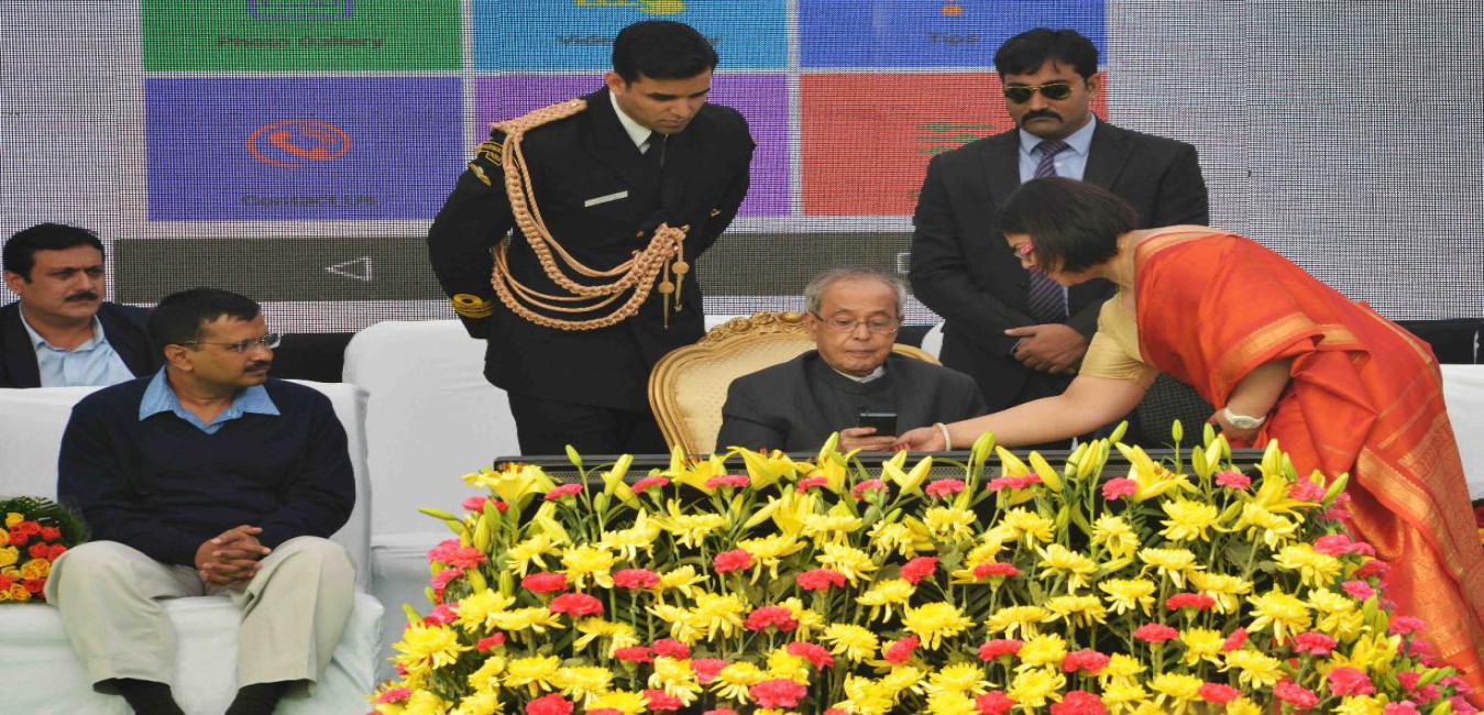 The President of India, Shri Pranab Mukherjee launching 'Sajag'- a Smartphone App on Energy Education, at Dr. Rajendra Prasad Sarvodaya Vidyalaya, President's Estate on December 11, 2015.