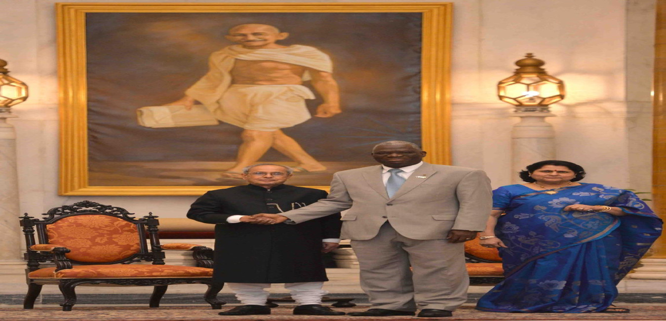 The President of India, Shri Pranab Mukherjee with the Minister of Industry and Mines of the Republic of Cote d'Ivoire, Mr. Brou Kassi Jean-Claude, on the sidelines of 3rd India Africa Forum Summit, at Rashtrapati Bhavan on October 29, 2015.