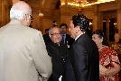 The President of India, Shri Pranab Mukherjee meeting with the former Union Minister, Shri M.L. Fotedar alongwith his son Shri Arun Fotedar, at Rashtrapati Bhavan, in New Delhi on October 30, 2015.