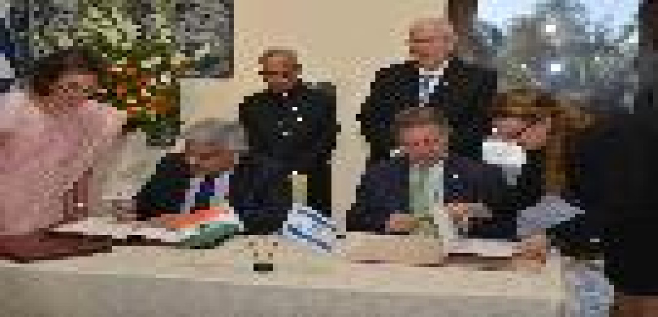 The President of India, Shri Pranab Mukherjee and the President of Israel, Mr. Reuven Rivlin witnessing the Signing of Agreements/MoUs at President House, Jerusalem on October 14, 2015.