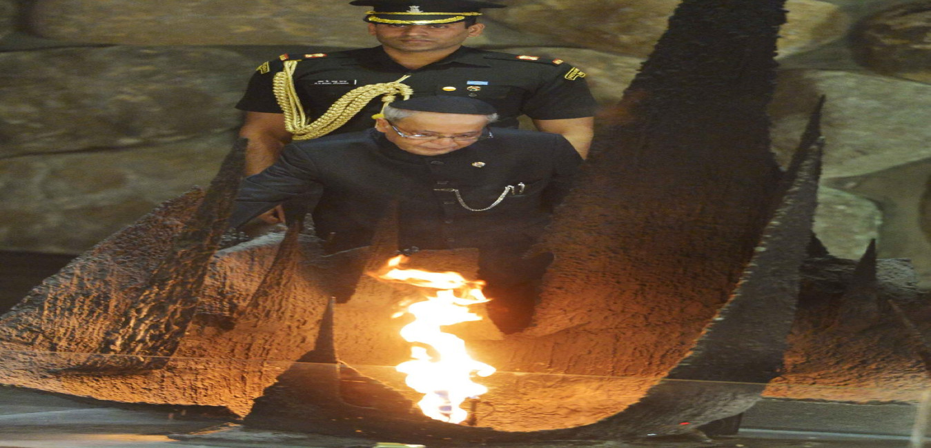 The President of India, Shri Pranab Mukherjee arrives at Knesset and laying a wreath at the Gal-Ed memorial for the fallen of Israel s wars, at Jerusalem, during his State visit of Israel on October 14, 2015.