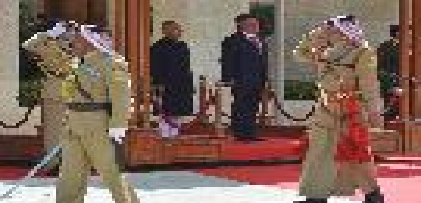 The President of India, Shri Pranab Mukherjee inspecting the Guard of Honour at the Ceremonial Reception in Al Husseinieh Palace at Amman in Jordan on October 10, 2015. The President being received by HM King Abdullah of Jordan at Al Husseinieh Palace.