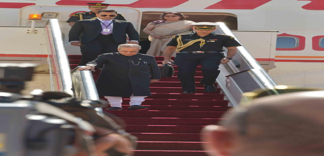 The President of India, Shri Pranab Mukherjee being received by the Labour Minister of Jordan, H.E. Dr. Nidal Mardi Qatamin on his arrival, at Queen Alia International Airport (Royal Pavilion), at Amman, in Jordan on October 10, 2015.