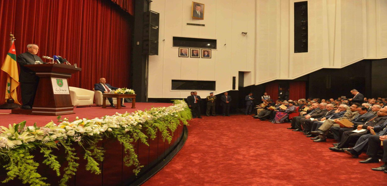 The University of Jordan conferring Honorary Doctorate in Political Science on President of India, Shri Pranab Mukherjee, at University of Jordan, Amman, in Jordan on October 11, 2015.