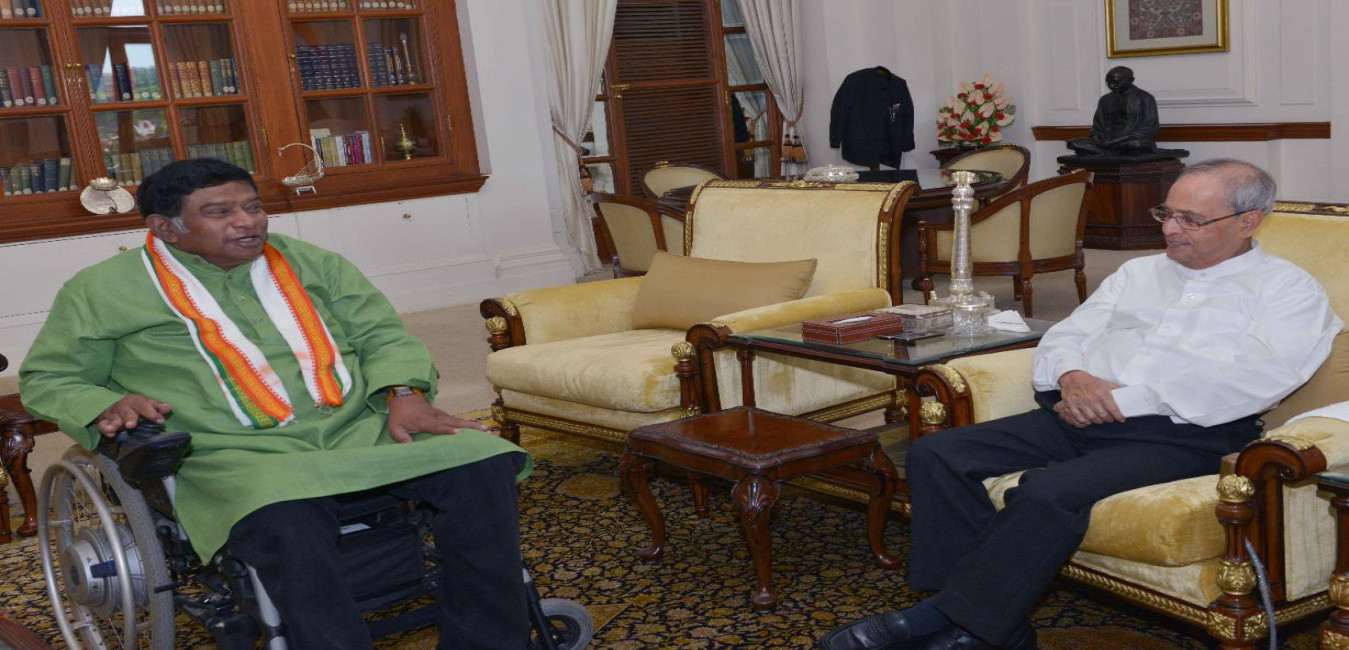 The President of India, Shri Pranab Mukherjee meeting with the former Chief Minister of Chhattisgarh, Shri Ajit Jogi, at Rashtrapati Bhavan, in New Delhi on September 25, 2015.