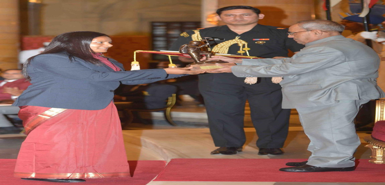 The President of India, Shri Pranab Mukherjee presenting Rajiv Gandhi Khel Ratna Award, 2015 to Ms. Sania Mirza, at the Sports and Adventure Award function, at Rashtrapati Bhavan, in New Delhi on August 29, 2015.