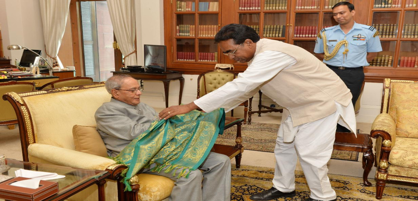 The President of India, Shri Pranab Mukherjee meeting with Shri JD Seelam, MP (RS), at Rashtrapati Bhavan, in New Delhi on August 14, 2015.