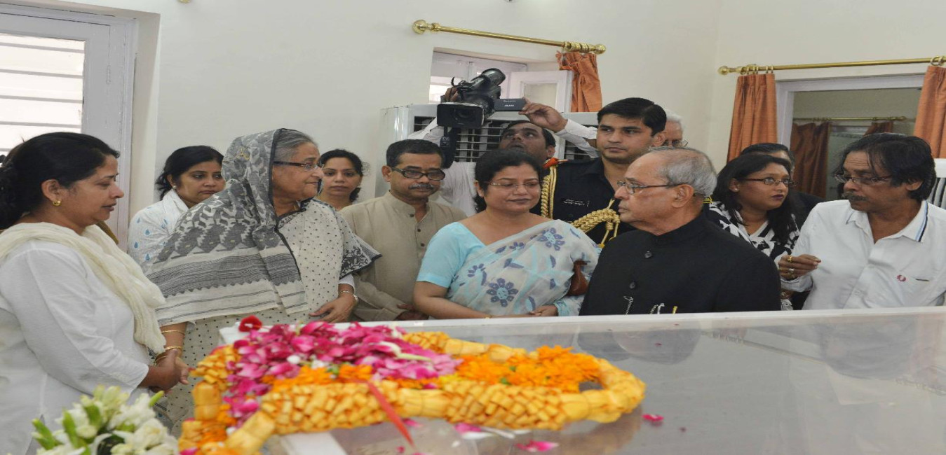 The Prime Minister of Bangladesh, Mrs. Sheikh Hasina paying her last respects to Smt. Suvra Mukherjee, at 13, Talkatora Road, in New Delhi on August 19, 2015.
