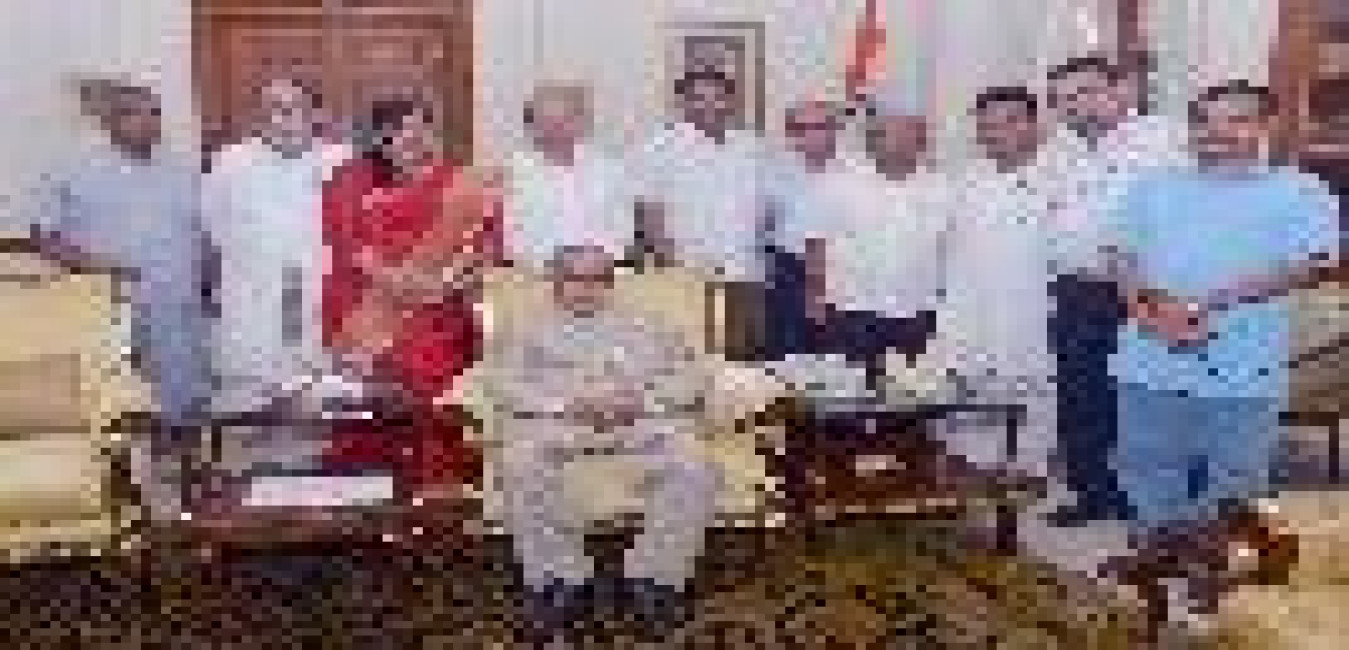 The President of India, Shri Pranab Mukherjee meeting with Shri Rabi Chattaraj and others from Mirati, at Rashtrapati Bhavan, in New Delhi on August 17, 2015.